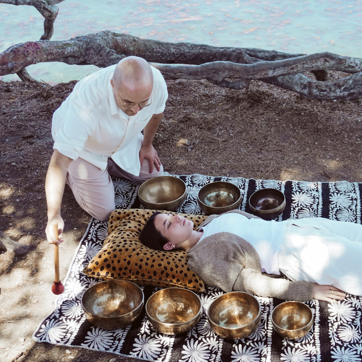 Each hand-hammered bowl is tuned to a specific note that corresponds to one of the seven chakras, supporting emotional, physical, and energetic well-being.